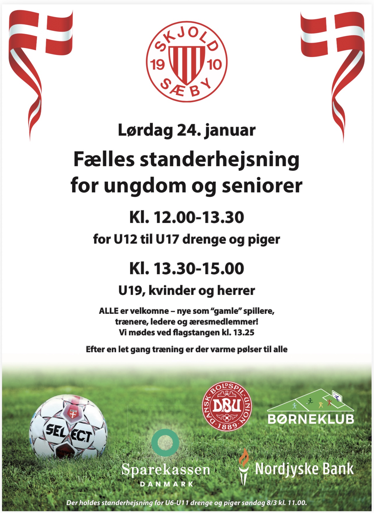 Standeren bliver hejst mellem de to seancer, og vi mødes ved flagstangen klokken 13.25. n holde standerhejsning for ungdom og seniorer den 24. januar. Børneholdene starter lidt senere - den 8. marts.